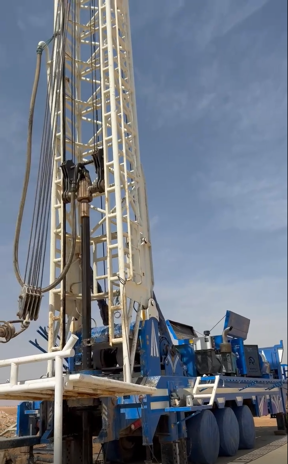 Luego, cuando se alcanza la profundidad objetivo, la broca y la tubería de perforación se retiran, el pozo se protege con un tubo de revestimiento de un diámetro menor al de la perforación, y el espacio entre la pared del pozo y este tubo de revestimiento se llena con grava de perforación.